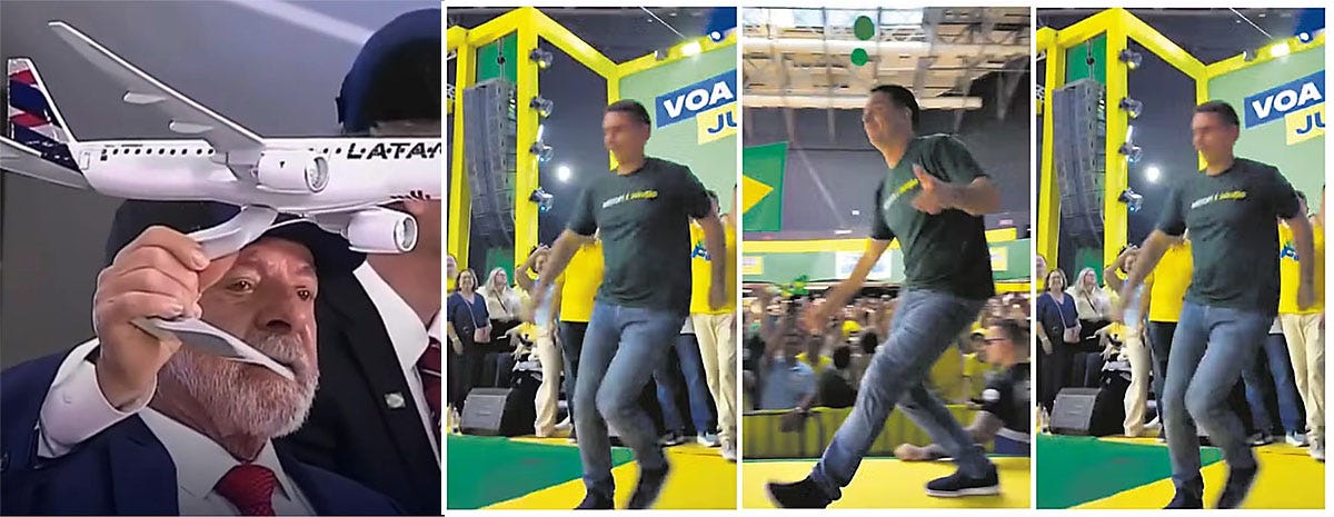 Toelichting bij bovenstaande plaatjes die de ronde doen op de sociale media, De beelden vatten de huidige politieke sfeer in Brazilië (maart 2026) treffend samen: