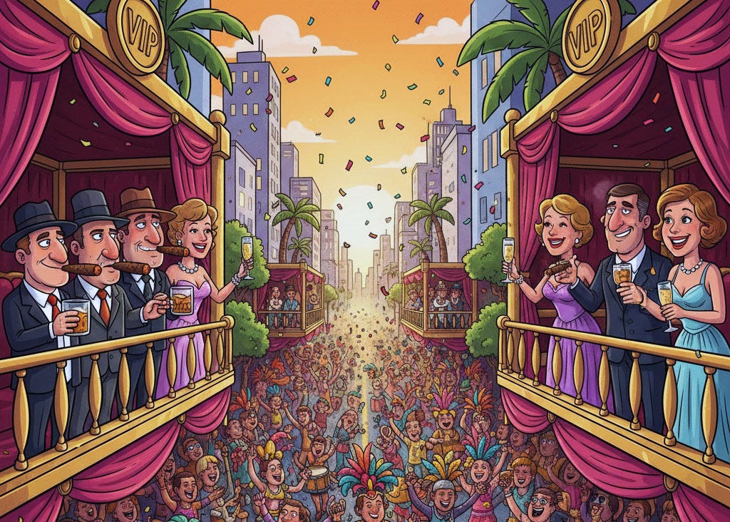 De “Gouden Kooi”: Terwijl Carnaval bedoeld is voor de ontmoeting, zorgen de Camarotes juist voor afscheiding. Je ontmoet daar enkel gelijkgestemden (en beroemdheden), ver weg van de rauwe realiteit van de straat.