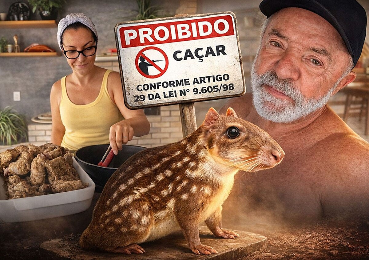 De huidige president wordt nu al maanden neergesabeld op de sociale media, iets wat hijzelf, vaak onbewust en vanuit een goedbedoelde spontaniteit, lijkt te versterken door uitspraken en momenten die telkens opnieuw voer worden voor controverse. Het recente verhaal van een zondagse maaltijd met het vlees van een paca gooide enkel nog wat vuur op de discussies. Wat begon als een huiselijk tafereel — Janja die in haar keuken een traditioneel gerecht bereidt voor het paasmaal — veranderde in een nationaal gespreksonderwerp zodra het filmpje online verscheen. In de video toont ze hoe ze het vlees, dat twee dagen had gemarineerd, langzaam laat garen, terwijl Lula op het einde in beeld komt om het gerecht uitbundig te prijzen. Op dat moment maakt Janja een speels grapje: “Quero ser chamada de Ana Maria Braga”, een verwijzing naar de beroemde tv-presentatrice die in Brazilië synoniem staat voor kookprogramma’s en culinaire gezelligheid. Het was duidelijk bedoeld als een luchtige knipoog, een moment van humor tussen twee mensen die samen een maaltijd delen.