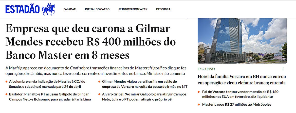 - Estadão: “Liquidatie Banco Master legt netwerk van invloed bloot.”