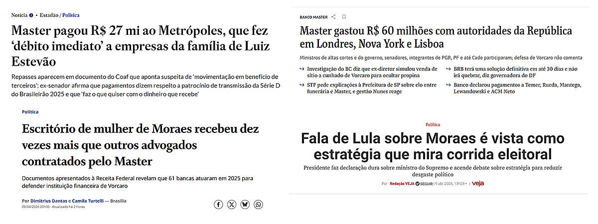 - Estadão: “Nieuwe documenten verdiepen crisis rond Banco Master en politieke connecties.”