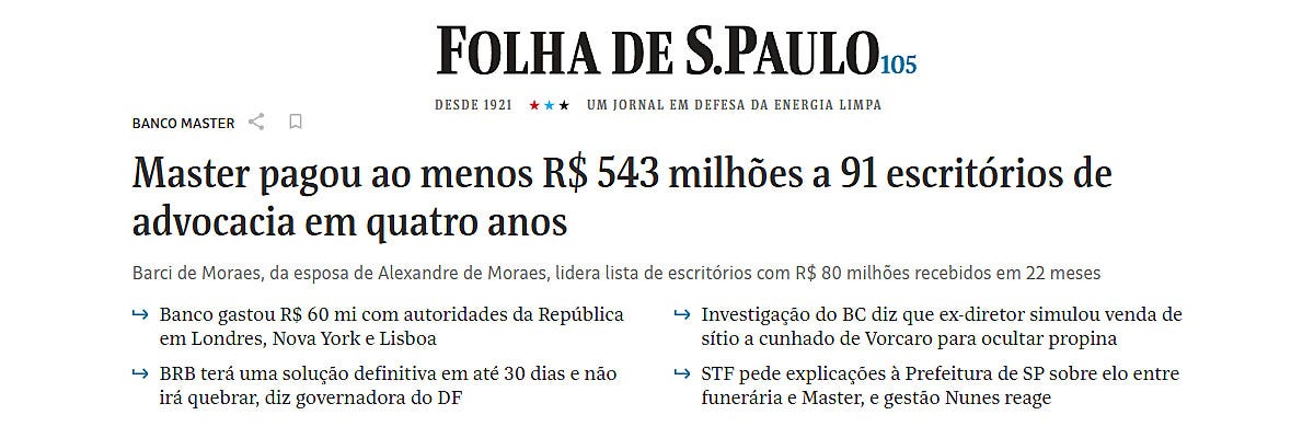 - Estadão: “Regering en STF onder druk na nieuwe onthullingen.”