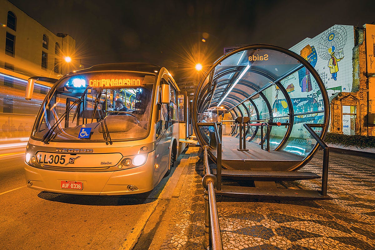 Curitiba (Paraná): Al decennia een wereldwijd voorbeeld van innovatieve stedenbouw en openbaar vervoer (foto hieronder), waardoor de stad leefbaar bleef ondanks snelle groei.