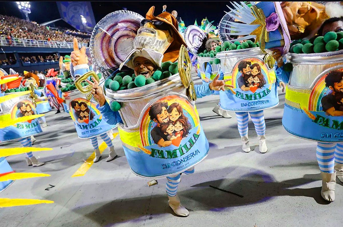 De “moeizame tweespalt” van Lula werd er, nog maar eens, bevestigd. Terwijl de sambaschool een presentatie gaf waarin conservatieve evangelische gezinnen letterlijk in blikken conserven werden afgebeeld als “verstikt”, daalde Lula af uit zijn camerote. Voor de ogen van de camera’s omhelsde en bedankte hij de makers.