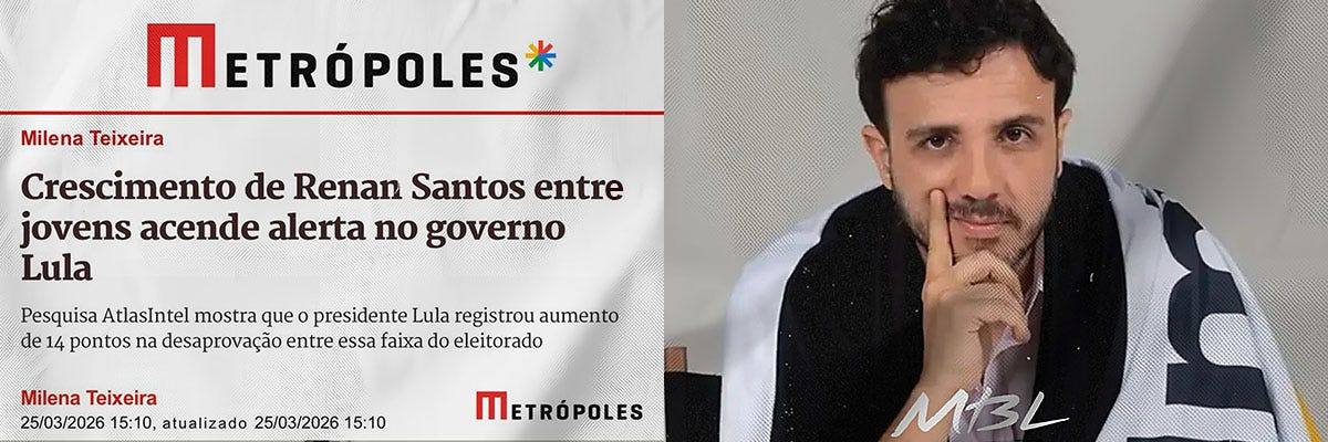 Onder aanhangers wordt Renan Santos al de “Braziliaanse Javier Milei” genoemd. Die vergelijking gaat dieper dan alleen hun wilde kapsels of het feit dat ze allebei rockzangers zijn; het draait om een onstuimige, ongefilterde politieke stijl die vol inzet op de kracht van sociale media. Santos profileert zich als een buitenstaander die simpelweg zegt wat er volgens hem gezegd moet worden, zonder rekening te houden met de politieke gevolgen. Hij schuwt de provocatie niet: zo trok hij naar het noordoosten om grof zout te strooien bij het voormalige huis van president Lula, als symbool om te voorkomen dat er ooit nog een “nieuwe Lula” opstaat* (zie video hieronder).
