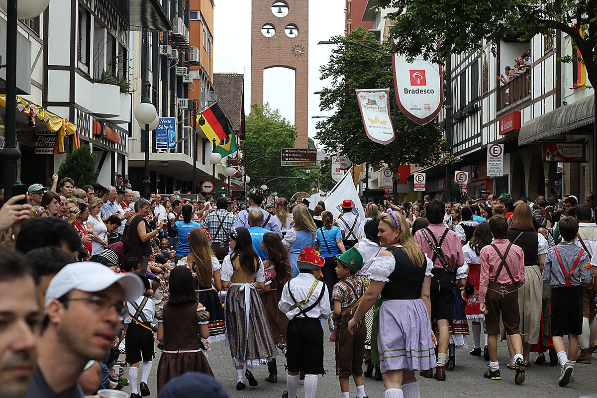 Nergens wordt dit contrast zo tastbaar als in de Vale do Itajaí. In oktober verandert de stad Blumenau in een Beiers dorp voor het Oktoberfest, het op één na grootste ter wereld. Het is een bevreemdende ervaring: tienduizenden mensen in Lederhosen en Dirndls die pullen bier drinken en Duitse schlagers zingen in Brazilië.