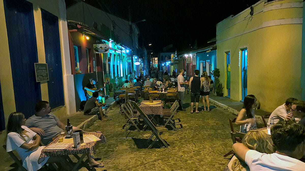 Wat me vanaf de eerste avond aantrok in Lençóis was de gezellige sfeer. Het volstaat om de straat op te gaan, rechtstreeks vanuit je verblijf. Smalle straatjes, uitnodigende tafeltjes en stoeltjes, nauwelijks verkeer. Zo leuk zelfs dat ik de tweede keer opnieuw voor dezelfde plek koos, in het volle besef dat mijn indruk daardoor beperkt bleef. Ach, je kan niet alles hebben in het leven.